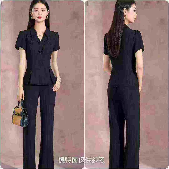 电商仓回收519套气质国风改良新中式条纹翻领短袖长裤套装,码数2-4-6码。面料柔软有弹力,款式新颖,货品干净,有独立包装,分货➕0.5