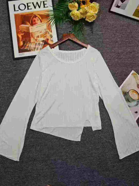 工厂回收582件韩系靓妹白色打底衫不规则设计感长袖T恤,码数S-2XL。面料有弹力,全部独立包装。分货+0.5