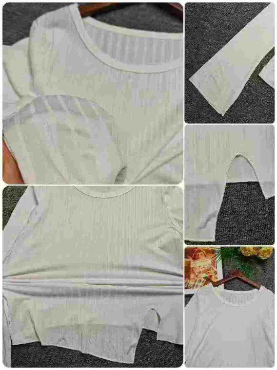 工厂回收582件韩系靓妹白色打底衫不规则设计感长袖T恤,码数S-2XL。面料有弹力,全部独立包装。分货+0.5