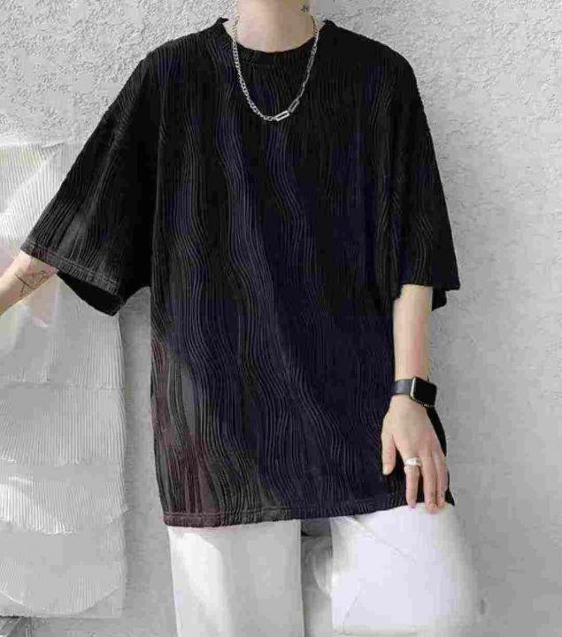 品牌原单夏季新款宽松冰丝水波纹褶皱肌理感男士T桖,...