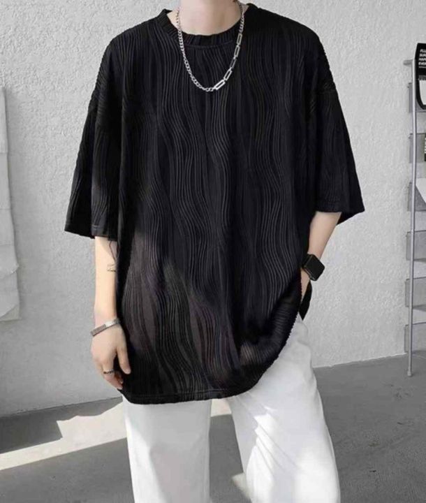 品牌原单夏季新款宽松冰丝水波纹褶皱肌理感男士T桖,独立包装带吊牌高品质,码数L码(可穿155斤左右),196件,全清5.9元超低价秒杀!