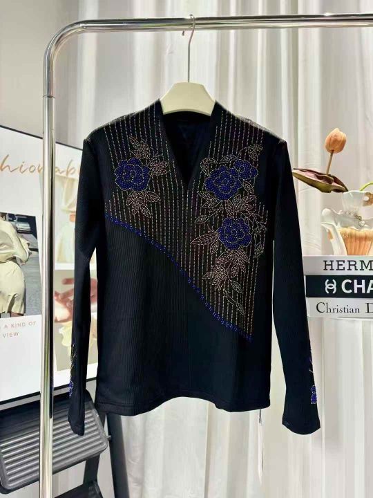 110件高端爆闪贵妇V领烫钻潮流新款时尚修身显瘦洋气加绒打底衫上衣,内里加婴儿绒,做工品质很好,高弹力,尺码S-4XL,独立包装,全清10.5 不分货