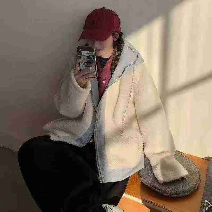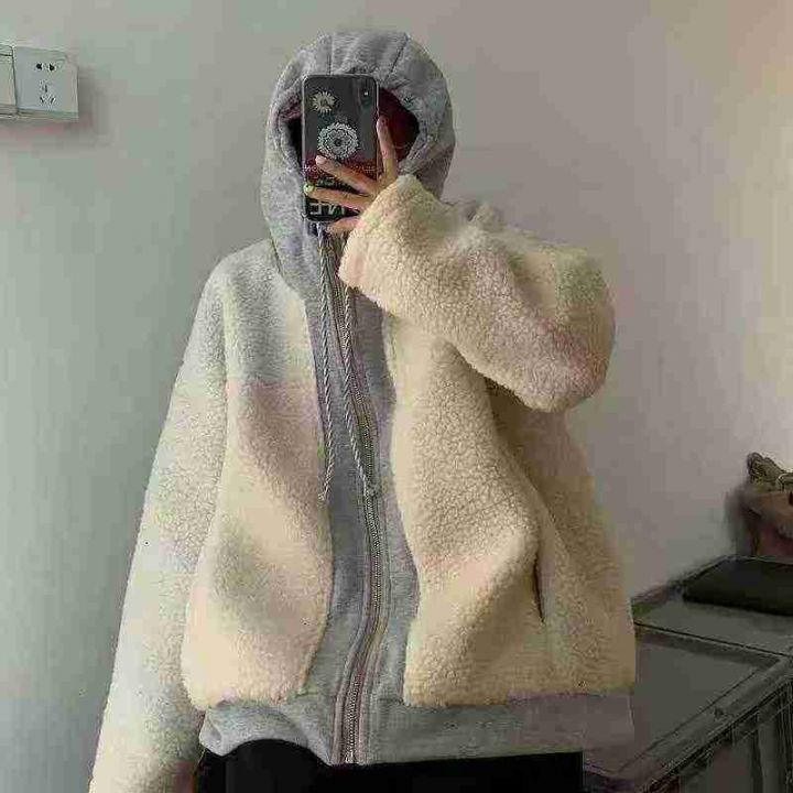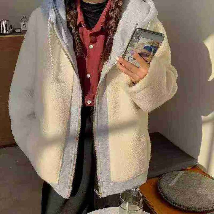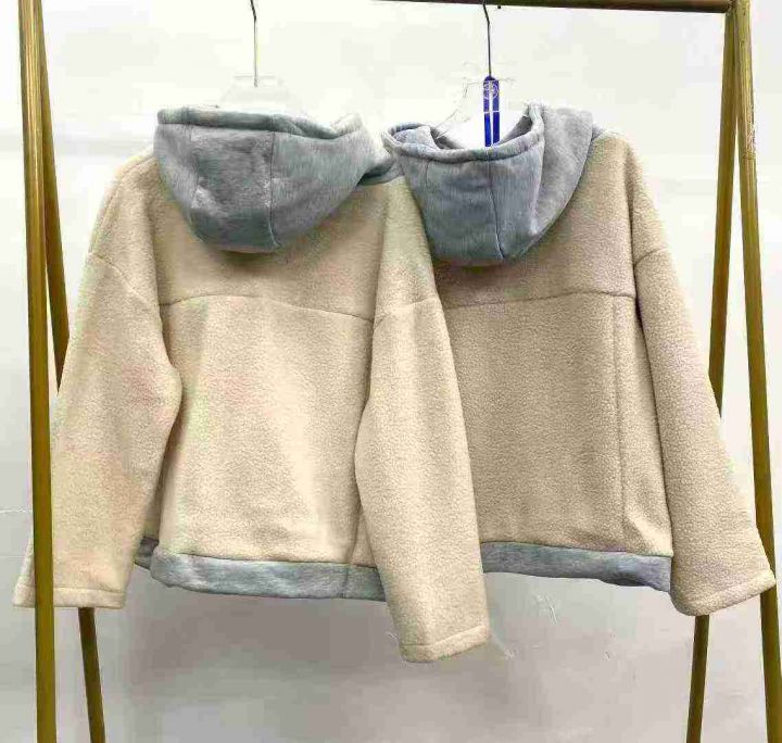 羊羔绒拉链连帽外套609件10.8,双层帽带抽绳,有口袋...