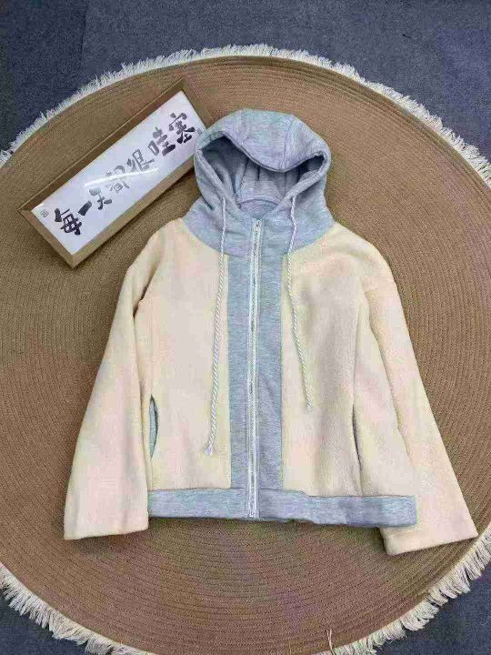 羊羔绒拉链连帽外套609件10.8,双层帽带抽绳,有口袋,码数1-2(M-L),1码...