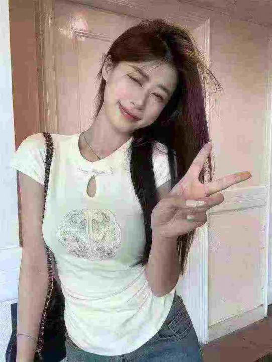 新中式国风刺绣盘扣纯棉短袖T恤女装夏季气质设计感修身显瘦短款上衣,(刺绣跟净色差不多各半)数量1440件,码数s-xl,独立包装,全清7.8,分货+0.5元