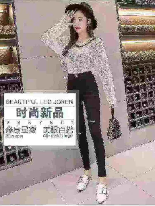 全清10.8分货加1842条破洞打底裤女外穿春秋2025新款高腰紧身弹力九分显瘦小...