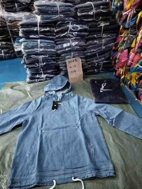 73件宽松休闲连帽牛仔卫衣外套。图片款,单款两个色,面料舒适,品质好。M一XL,独立包装带吊牌,全清6.8。 货号:24862