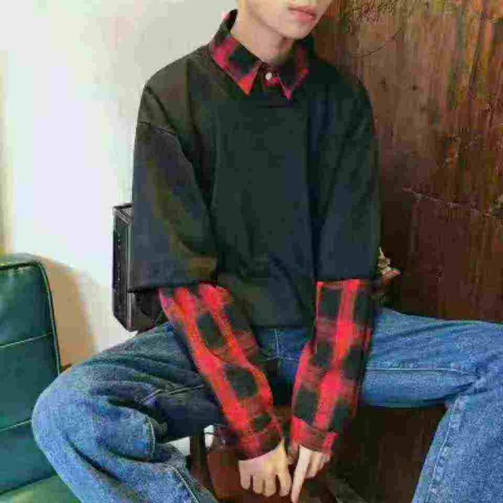 秋冬季假俩件拼接衬衫男士长袖韩版宽松,数量3400件,...