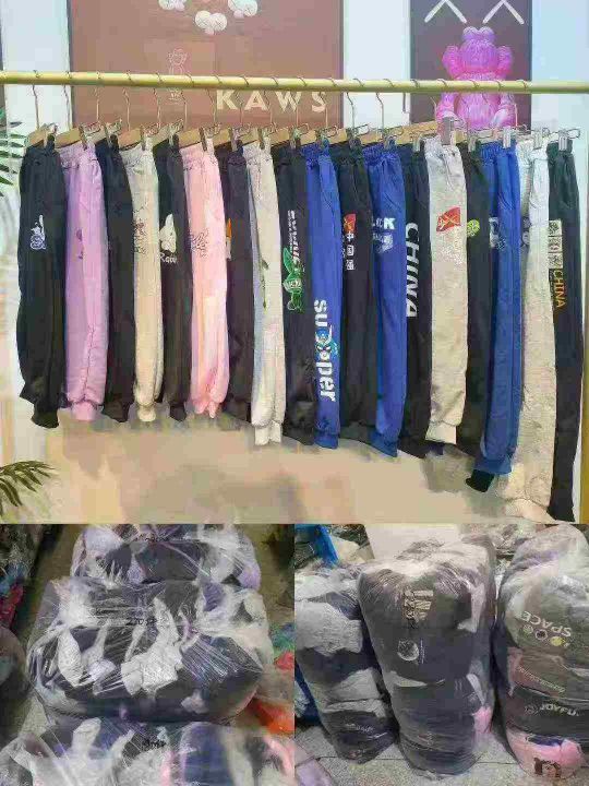 615件春秋季男女中大童印花束脚休闲卫裤 鱼鳞棉布,很多图案,码数110-170 货品干净防水袋装。。 货号:24862
