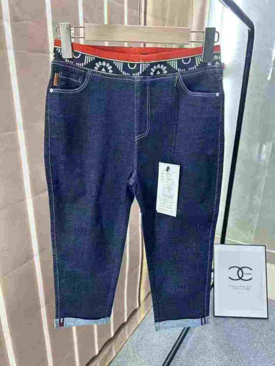 全清7.9。夏季薄款松紧腰七分裤修身显瘦牛仔裤女2025新款高腰弹力7分中裤,全部独立包装,码数29到36,共80条左右,不分货