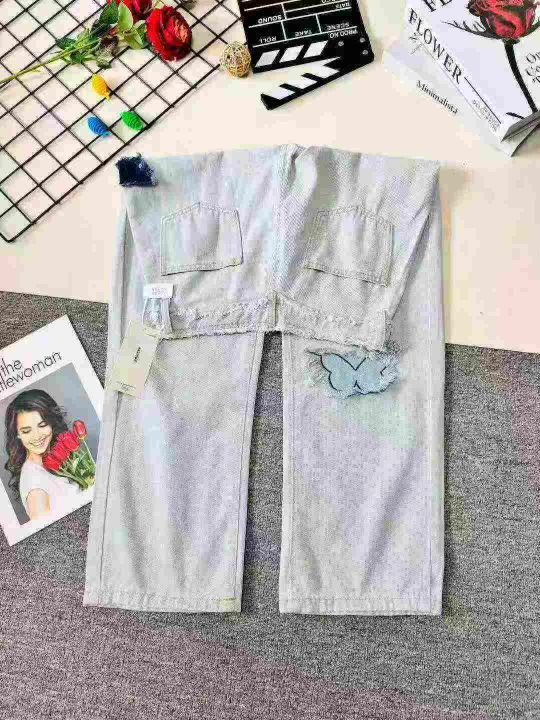 天猫精选1500条 时尚洋气国潮蓝色蝴蝶刺绣毛边阔腿牛仔裤女,单款单色S~XL码,码数比例很平均,品质很好,独立包装带吊牌,全清10.8元分货加一[烟花][烟花][烟花]