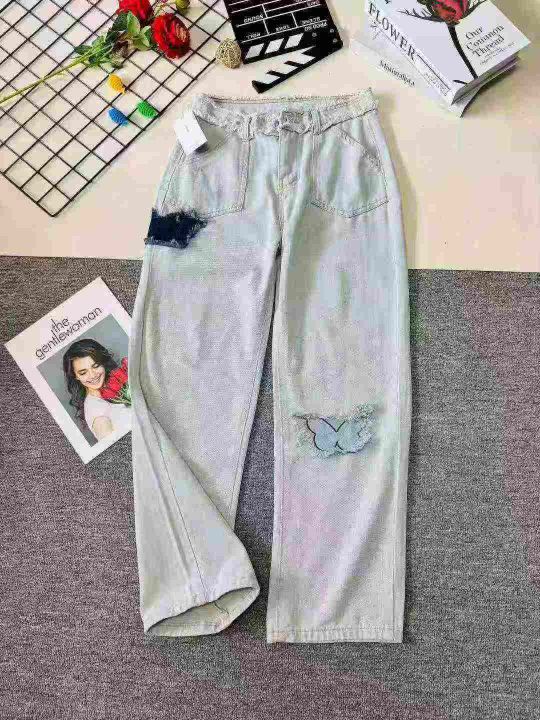 天猫精选1500条 时尚洋气国潮蓝色蝴蝶刺绣毛边阔腿牛仔裤女,单款单色S~XL码,码数比例很平均,品质很好,独立包装带吊牌,全清10.8元分货加一[烟花][烟花][烟花]