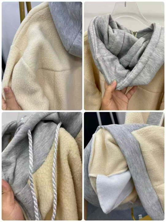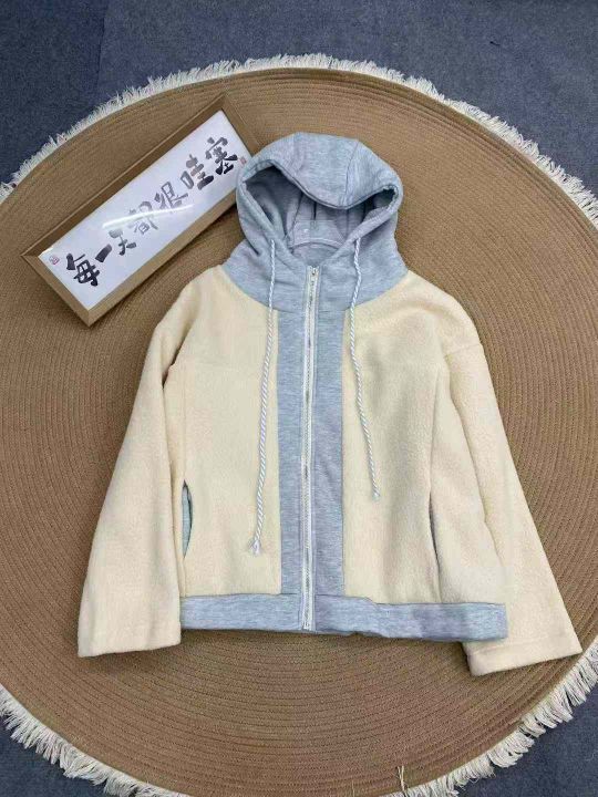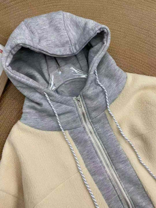 羊羔绒拉链连帽外套609件10.8,双层帽带抽绳,有口袋...