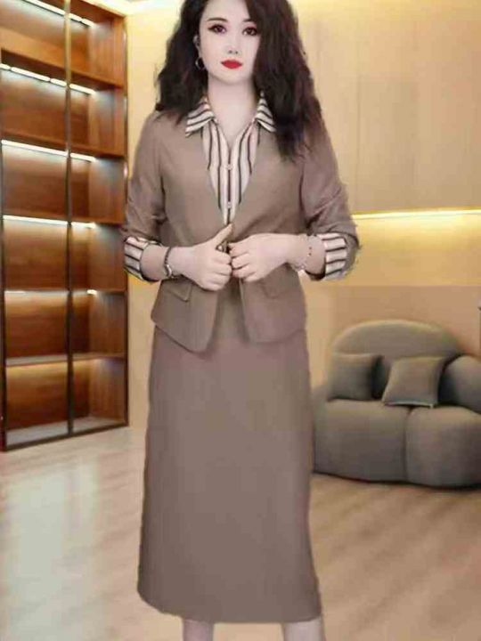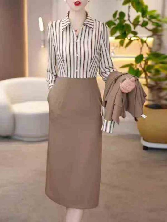 430件高级端庄气质两件套女2025秋季新款外套搭裙子修身高贵时尚套装,整款2个色,码数1-4码,独立包装。 货号:1323