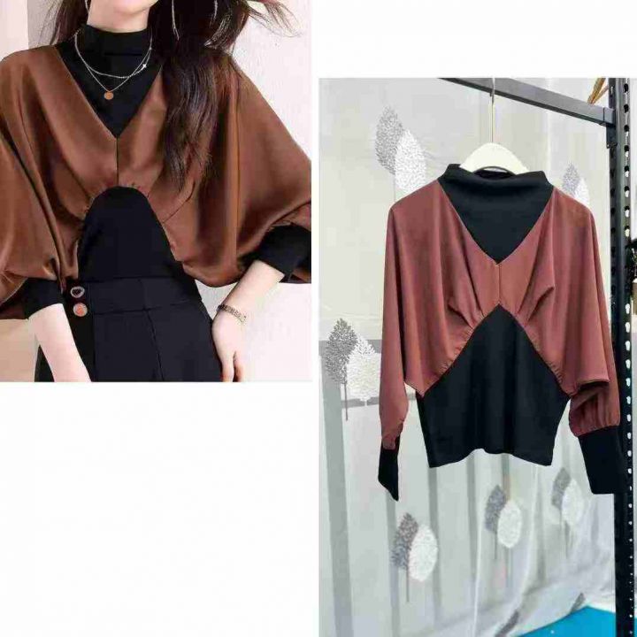 2025新款气质拼接蝙蝠袖上衣802件,码数S-3XL,单款多...