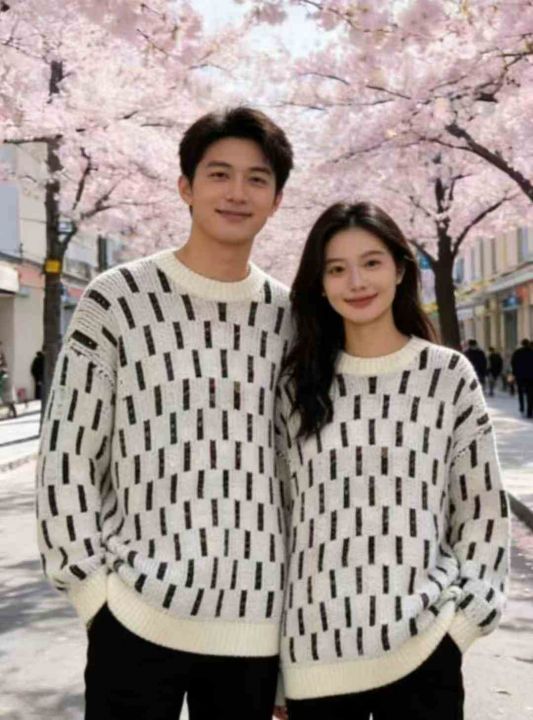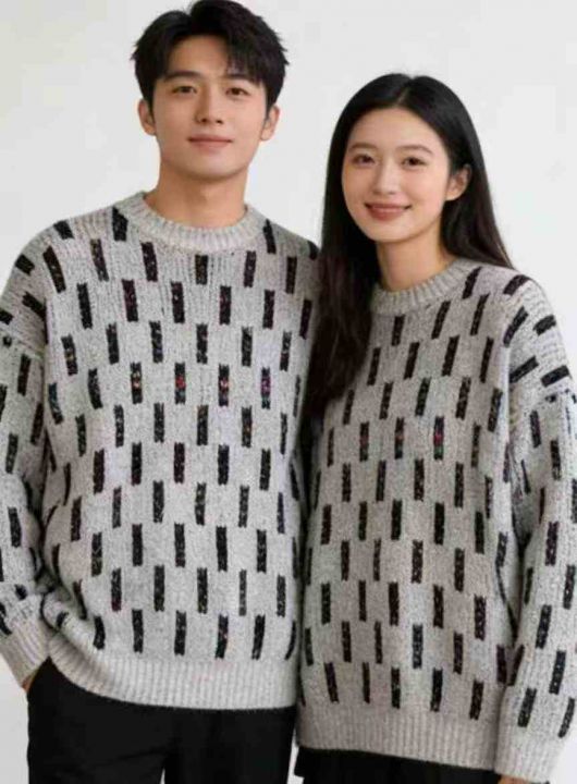 秋冬新款宽松提花大板加厚圆领套头毛衣,独立包装,均...