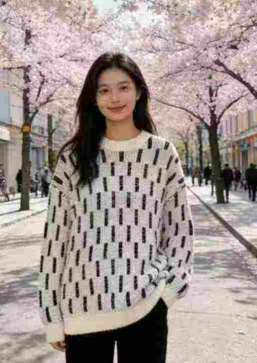 秋冬新款宽松提花大板加厚圆领套头毛衣,独立包装,均...