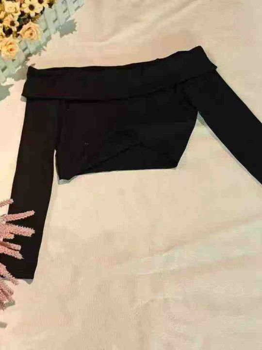 辣妹一字肩 黑色长袖t恤 女秋季短款 修身打底衫高级性感露肩上衣 螺纹面料 质量很好 码数s~xl 总数145件 全清6.8[烟花][烟花]。 货号:24862