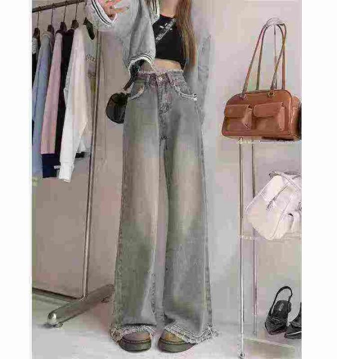 春秋新款宽松百搭网红毛边大阔腿牛仔裤,独立包装带吊...