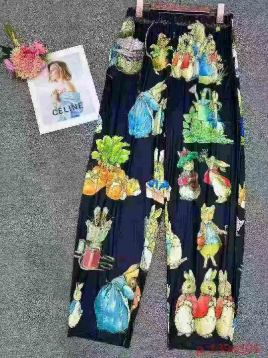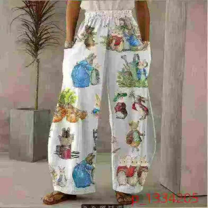 欧美外贸春夏宽松卡通兔子印花宽松阔腿裤可外穿宽松口...