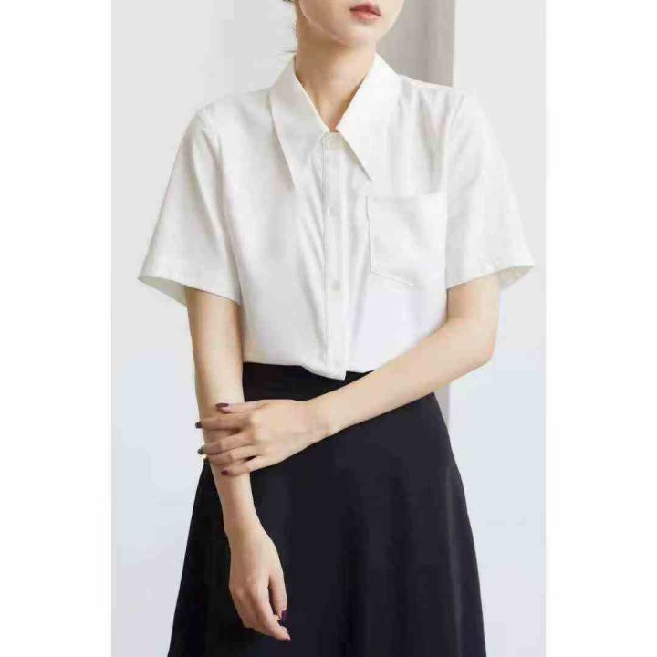 清仓4.978件气质简约纯色短袖衬衫宽松百搭装翻领开衫 ...
