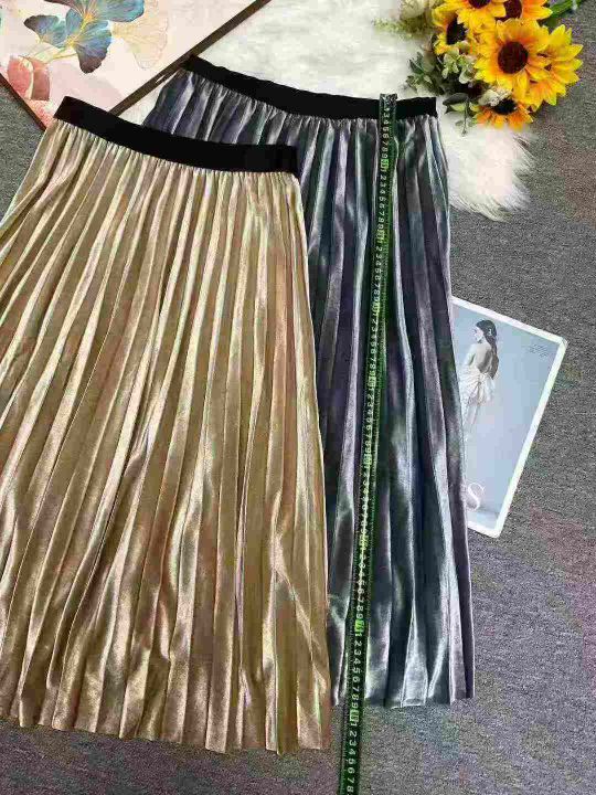 秋冬新款高级感法式百褶高腰时尚优雅大摆丝绒半身长裙,独立包装,码数S--L码,40件左右,全清6.9元超低价秒杀!。 货号:24862