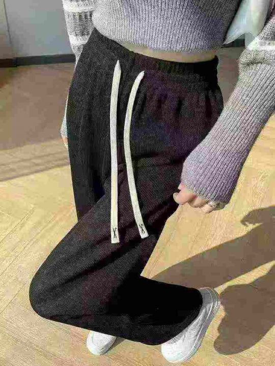 春秋新款松紧腰宽松百搭直筒窄版阔腿裤,独立包装,码...