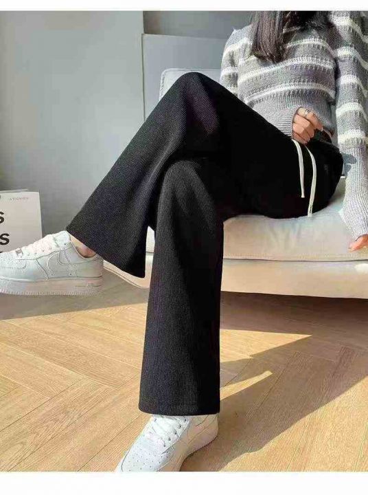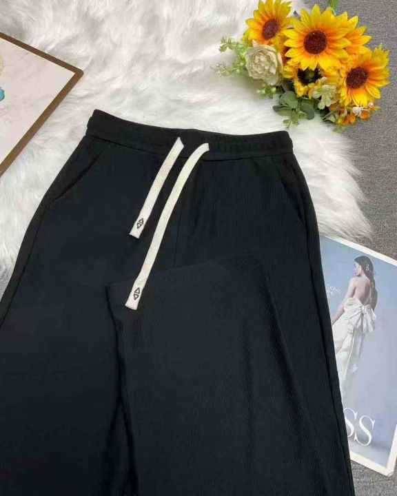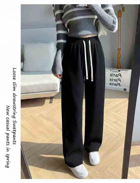 春秋新款松紧腰宽松百搭直筒窄版阔腿裤,独立包装,码...