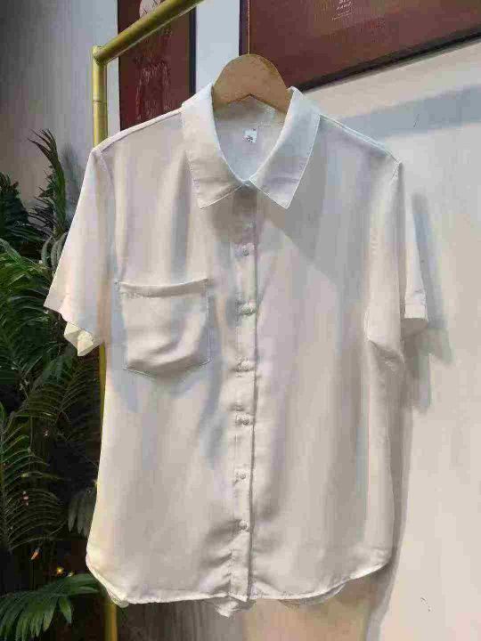 清仓4.978件气质简约纯色短袖衬衫宽松百搭装翻领开衫 ...