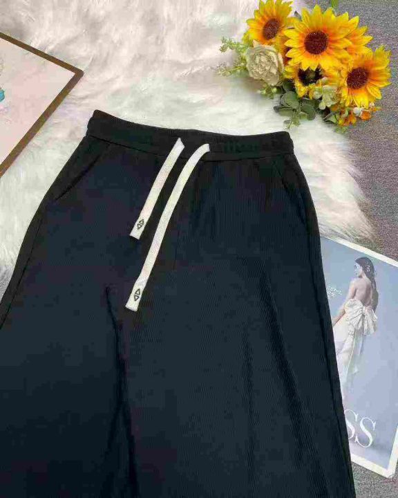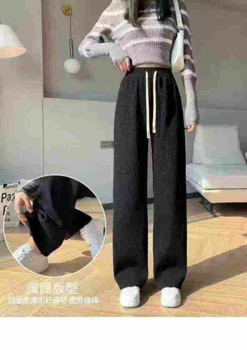 春秋新款松紧腰宽松百搭直筒窄版阔腿裤,独立包装,码...