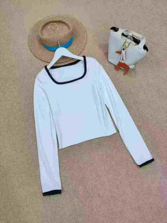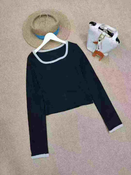 [月亮]:纯欲短款拼接方领辣妹德绒长袖上衣