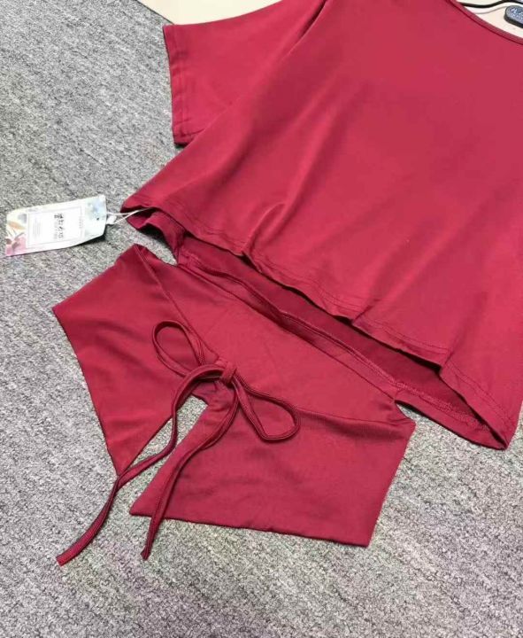 气质名媛风高级感酒红色法式绑带显瘦短袖上衣,单款单色,有肩垫设计,品质好有独立包装,码数S- XL,数量300件,全清6.8元秒。