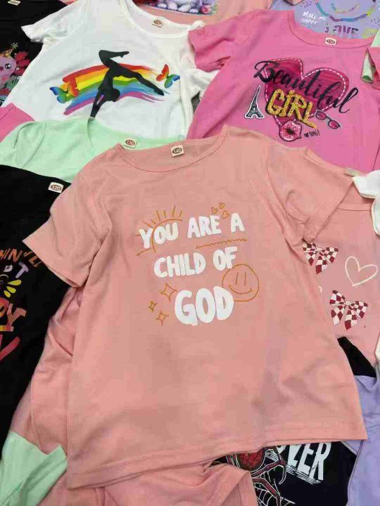 全清2.98元,18800件\'童装短袖T恤,卡通彩色图案童装短袖T恤,花型大同小异一系列\'独立包装,码数90-160,分货200起3.5元
