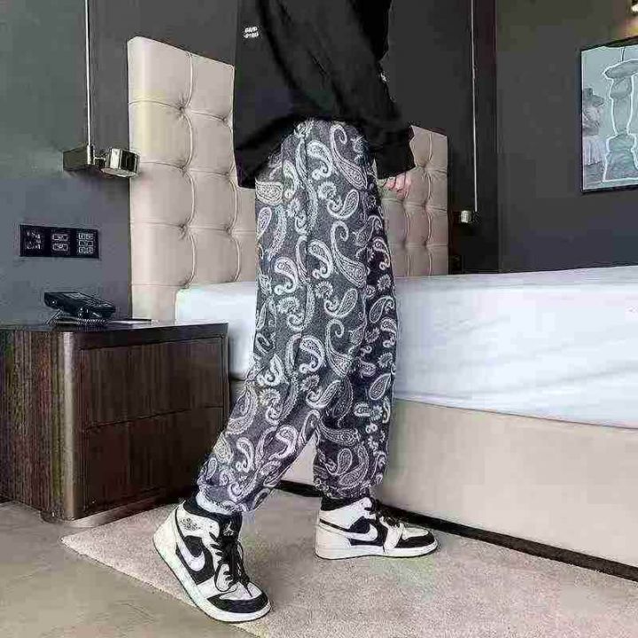 194条,腰果花印花休闲裤男秋季新款欧美ins潮牌嘻哈老爹裤宽松束脚裤子,独立包装,码数M-3XL,全清6.9元,分货➕1