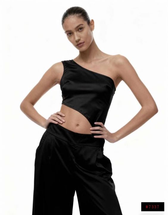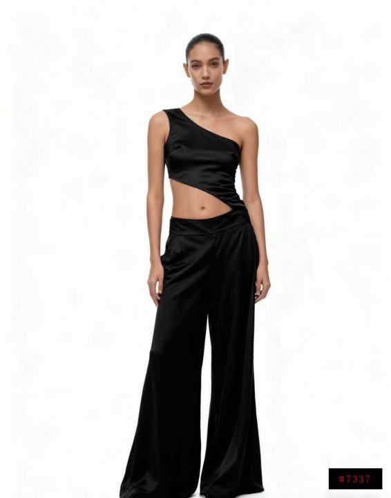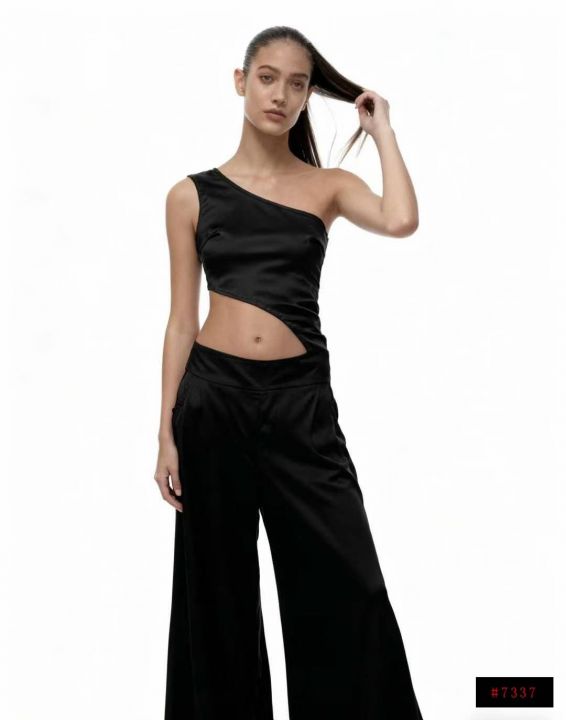 欧美跨境性感女装斜跨露长裤两件套,数量 100 套,码...