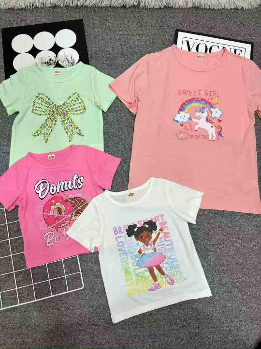 全清2.98元,18800件\'童装短袖T恤,卡通彩色图案童装短袖T恤,花型大同小异一系列\'独立包装,码数90-160,分货200起3.5元
