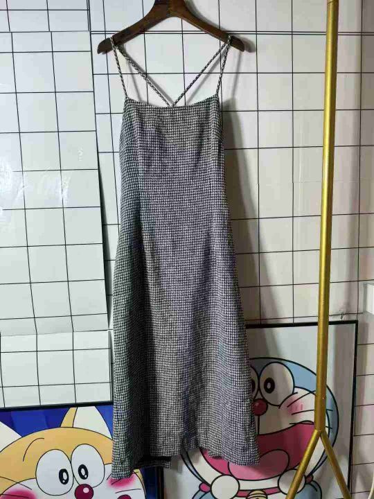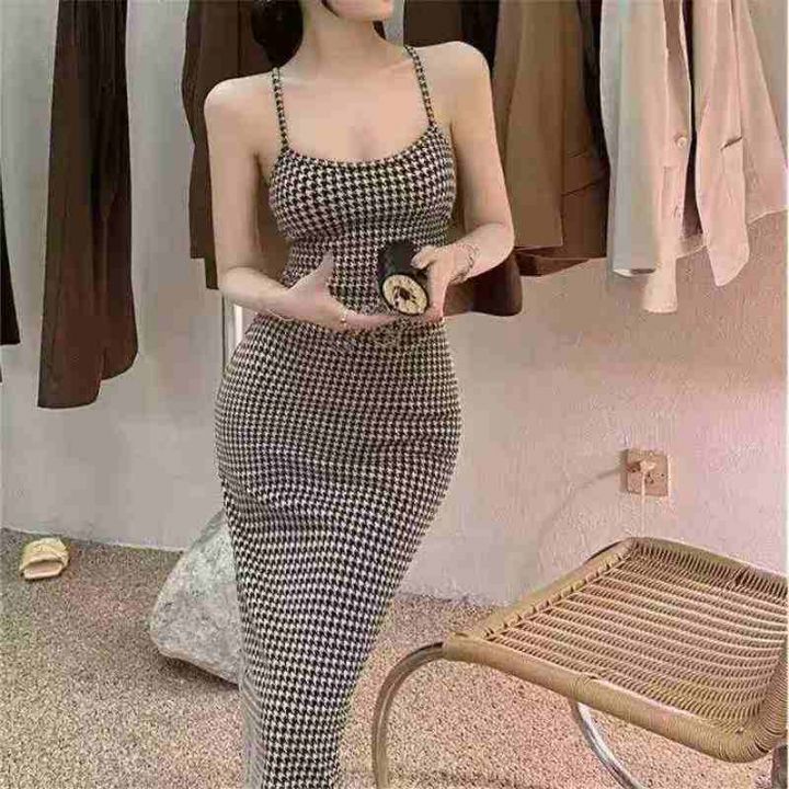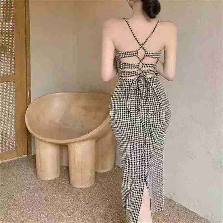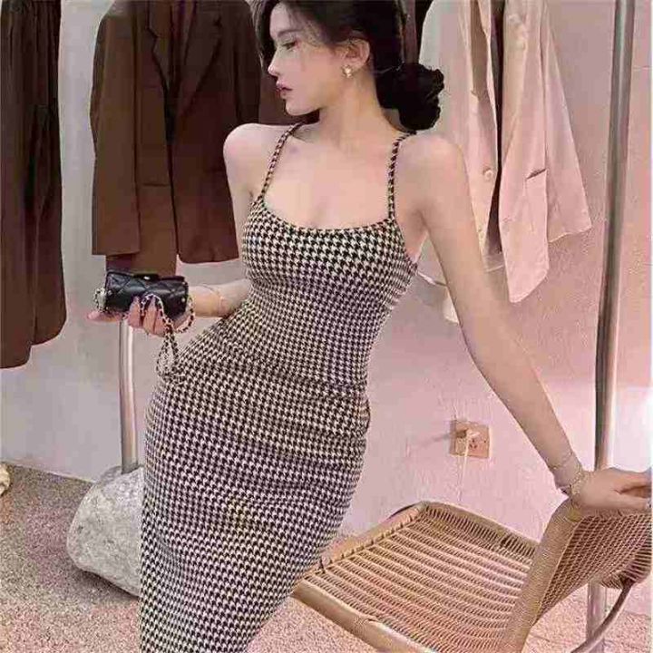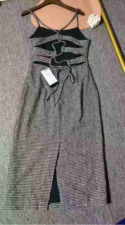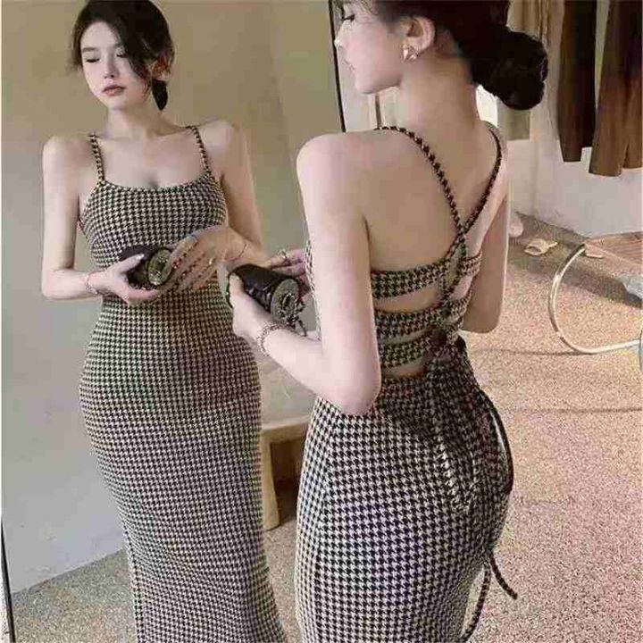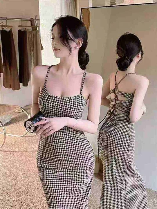 9.9清118件高级感复古千鸟格吊带连衣裙女夏季纯欲风性感露背收腰中长款包臀裙 面料质感杠杠滴实体店可入码数S-XL 独立包装带吊牌