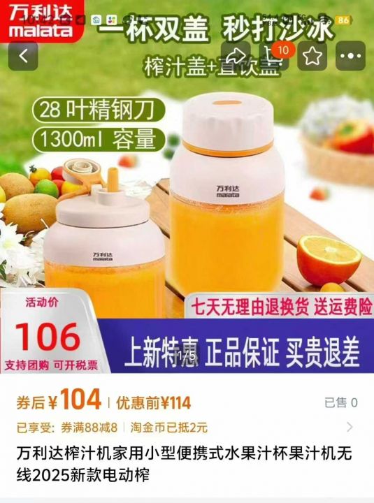 万利达电动果汁杯2000台处理价格美丽[庆祝]...
