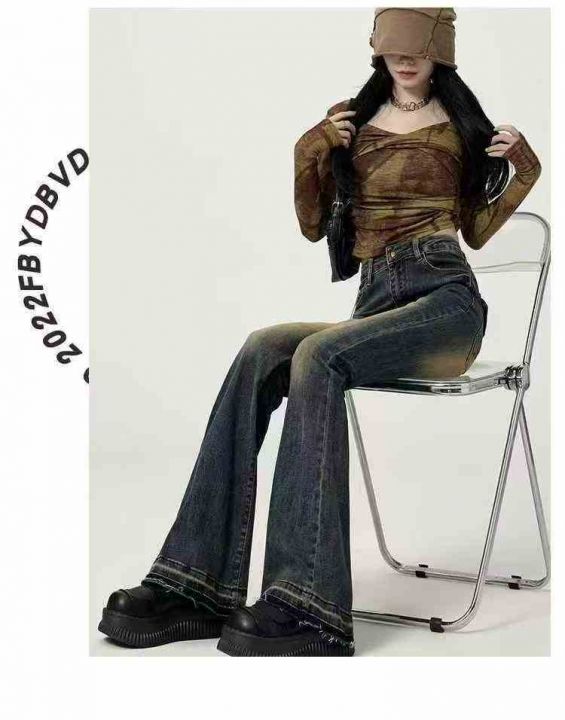 ins辣妹复古微喇叭牛仔裤女春秋爆款美式马蹄拖地裤,...