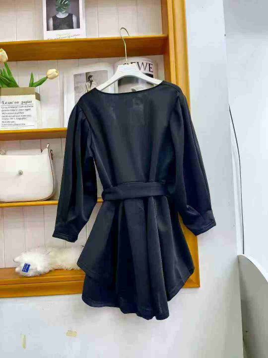 ① 春季大码女装名媛气质V领系带连衣裙!独立包装,码...