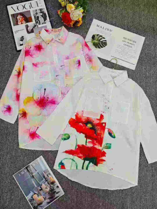 工厂回收357件外贸女士宽松大版印花长袖衬衫,码数S-2XL。版型质量好,颜色丰富鲜艳,货品新,有独立包装。分货➕1