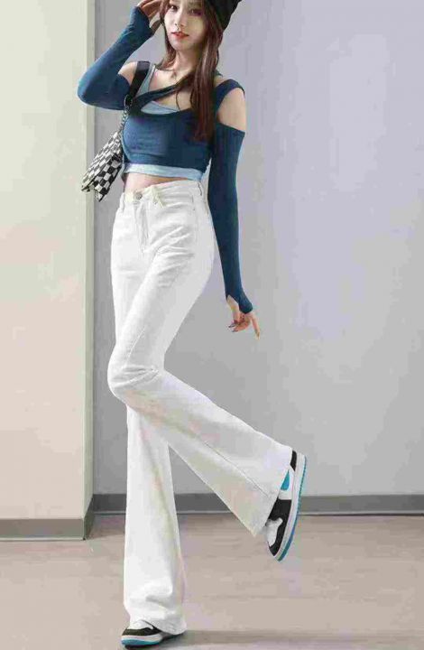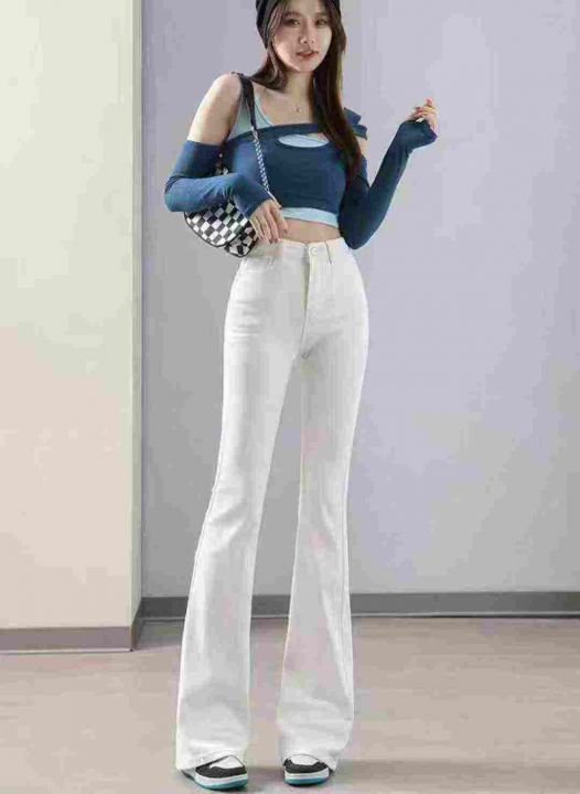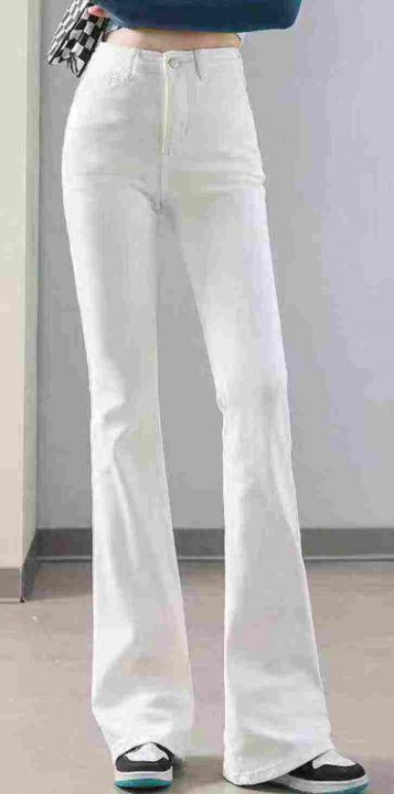 春秋新款高弹力洗水棉网红微喇叭牛仔长裤,独立包装带...