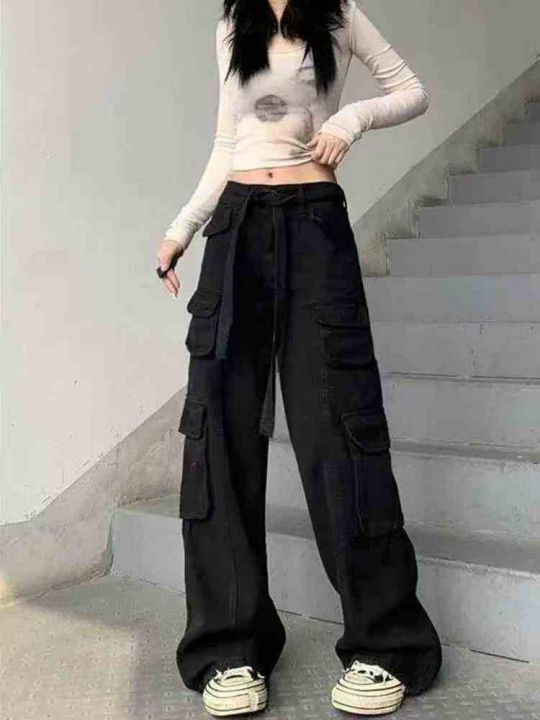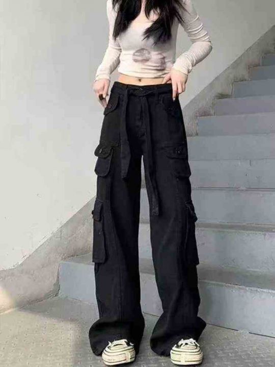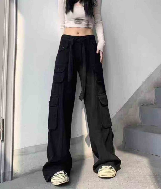 春秋新款洗水棉网红多袋工装牛仔直筒阔腿裤,独立包装...