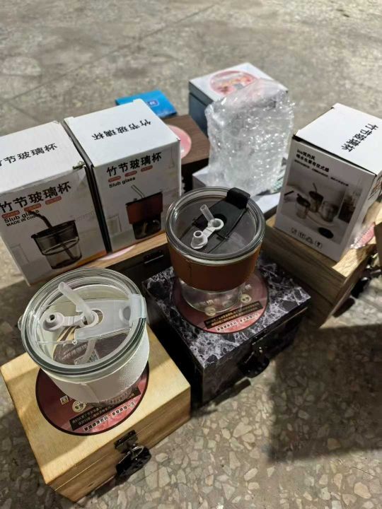 高档密码带锁木盒竹节玻璃杯 实木盒带密码锁木盒里面...