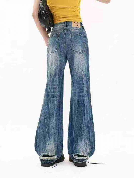 春秋新款设计款网红爆款直筒阔腿喇叭牛仔裤,独立包装...