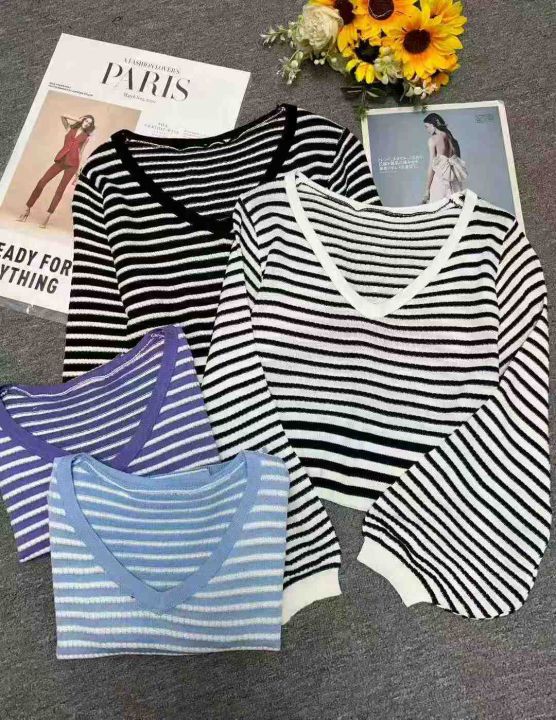 秋季新品撞色条纹宽松慵懒风短款针织V领套头毛衣,独立包装,均码面料柔软舒适弹力大,130件,全清5.9元超低价秒杀!
