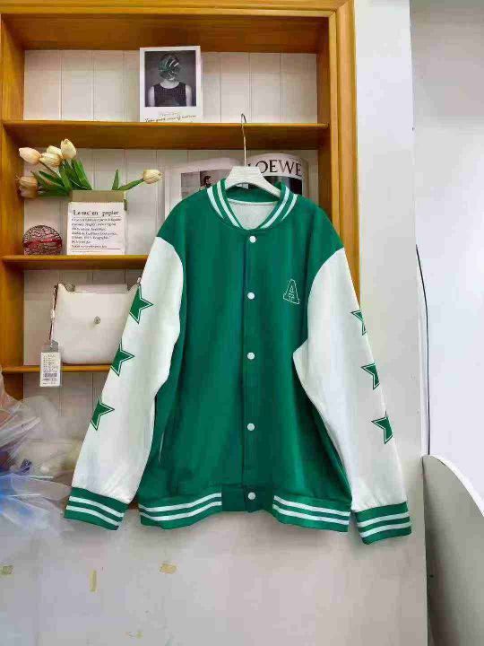 ① 美式潮牌夹克外套男女同款高街休闲棒球服!做工面料厚实,版型宽松,后领包边!两个整款,绿色有加婴儿绒,码数L-4XL,数量600件左右,全清14.8元