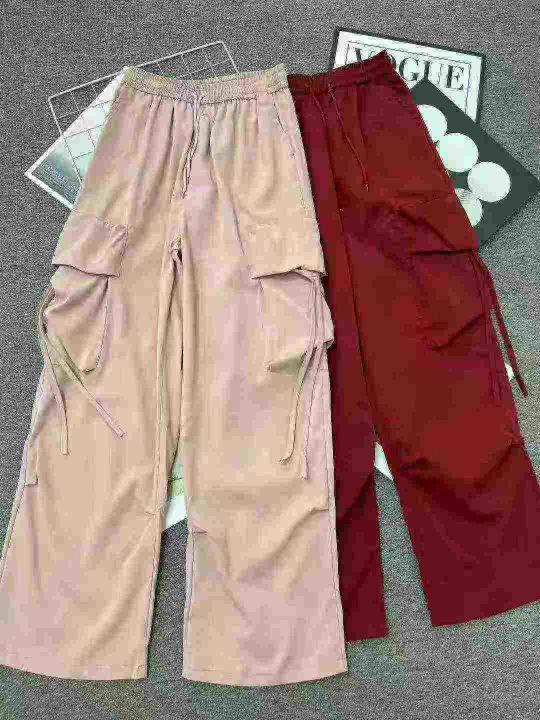 美式整款女装工装裤☕️货号2303# 数量280条全清14.8元,大货酒红色多,码数S到XXL,独立包装,精致内里全部包边,多巴胺美式工装裤女高腰直筒阔腿设计感小众宽松休闲拖地长裤。 货号:24862