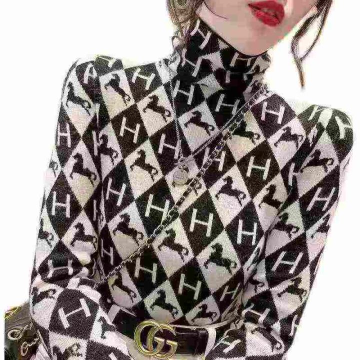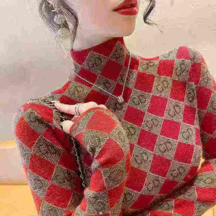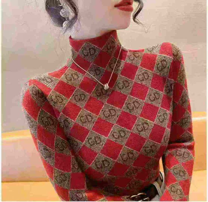秋冬新款高品质水貂一体绒高领保暖时尚洋气套头毛衣,...