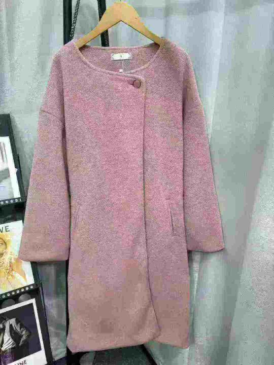 91件秋冬韩系高级粉色毛呢时尚中长款法式复古毛呢外套...